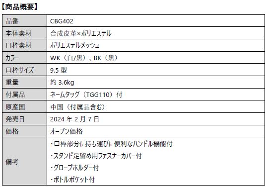 ブリヂストンスポーツ株式会社は、ツアーモデルシリーズとして機能性に優れた『ツアーレプリカモデル(CBG401)』と『ツアースタンドモデル(CBG402)』を2月7日より発売します。価格は全てオープンです。