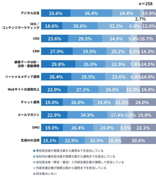 ※「専任担当者が施策立案から運用までを担当している」「自社内の兼任担当者が施策立案から運用までを担当している」の合算