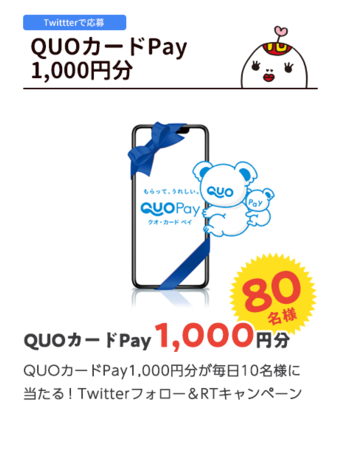 ★QUOカードPAY 1,000円分を毎日10名様 計80名様