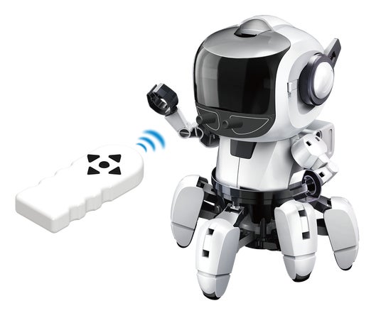 エレキットの6足歩行人気ロボット・フォロシリーズより4台同時にバトルができ、リモコン操作で動く「リモフォロ」が新登場。赤外線信号でロボット本体を前後左右、思いのままに動かすことができます。
