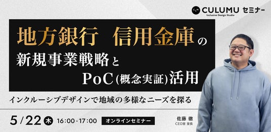 5月22日(木)16時から「地方銀行・信用金庫の新規事業戦略とPoC(概念実証)活用 ~インクルーシブデザインで地域の多様なニーズを探る~」 セミナーを開催します。
