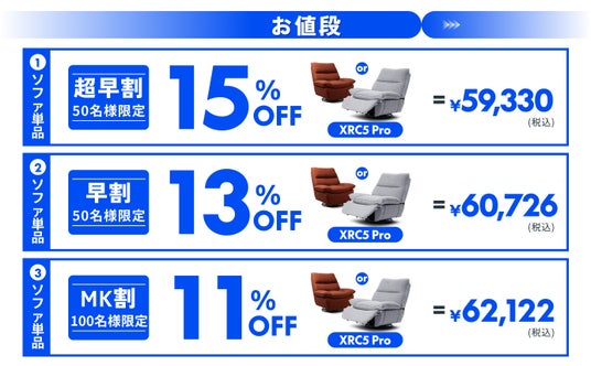 この度、Flexispot Japan株式会社(本社:埼玉県入間郡、代表取締役:斉冰白、以下FlexiSpot)は、2024年9月2日(月)10時よりMakuakeにて開催される「先行販売」において、弊社の新商品リクライニングソファXRC5 Proを提供することをお知らせいたします。さらに、9月2日(月)10時より実施される「先行販売」と並行して、対象商品を最大15%OFFの価格でお買い求めいただけます。