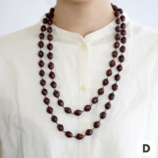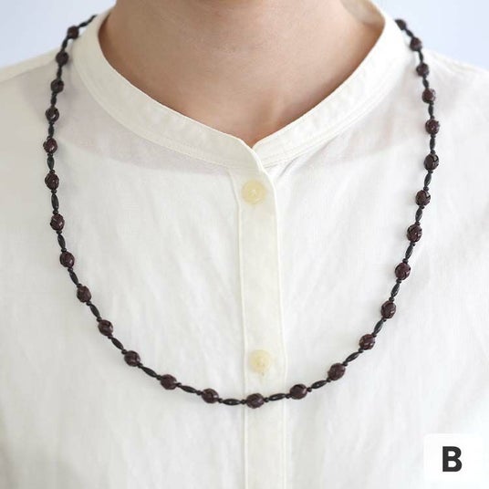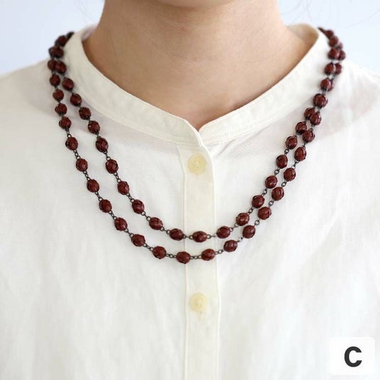 細やかに編み込まれた小粒の竹玉が美しいロングネックレスです。一重でシンプルに、二重に巻いてボリューム感を出すなど、アレンジの幅も広がります。