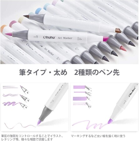 ( https://www.ohuhu.jp/product-page/マーカーペン-筆-太字-216色-1 )