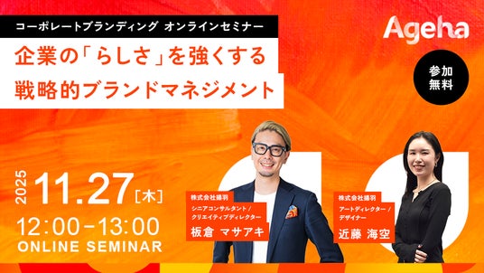 コーポレートブランディング支援を行う株式会社揚羽(東京都中央区 代表取締役社長:湊 剛宏 証券コード:9330)は、2025年11月27日(木)に「企業の『らしさ』を強くする戦略的ブランドマネジメント」と題したセミナーを、オンラインで開催します。
