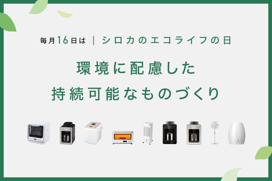 シロカ株式会社(東京都・千代田区)が「持続可能なものづくり」を実現するための取り組みとして行ってきた「整備済み製品」の販売が、今年6月で3年目を迎えました。6月16日より販売アイテムのラインナップをさらに拡充するとともに、毎月16日を”シロカのエコライフの日”として、エコにまつわる様々な情報を発信していきます。