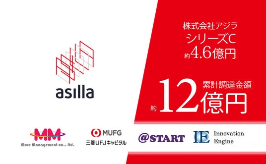 株式会社アジラ(本社:東京都町田市、代表取締役:木村大介、以下「当社」)は、シリーズC ラウンドで約4.6億円の資金調達を実施しました。株式会社アジラ(本社:東京都町田市、代表取締役CEO:木村大介、以下「当社」)は、シリーズC ラウンドで約4.6億円の資金調達を実施しました。本ラウンドは、既存投資家であるモアマネジメント株式会社をリードインベスターとして、三菱UFJキャピタル株式会社、株式会社エースタート、イノベーション・エンジン株式会社を引受先としています。また、今後デットファイナンスについても予定しており、資金調達額は更に増加する見込みです。