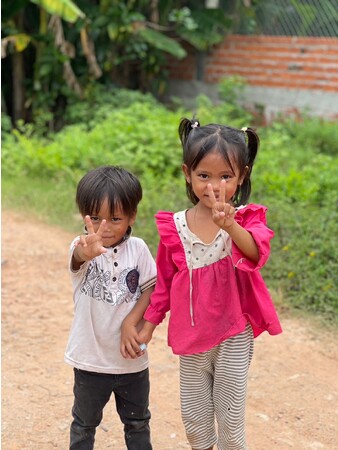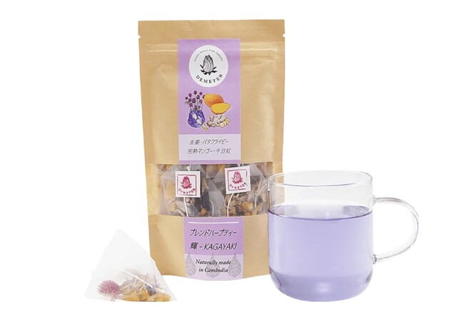 カンボジアの農家と学校の子供たちが一緒に作るハーブティーをテイクアウトで販売。写真を見ながら飲むことができます。