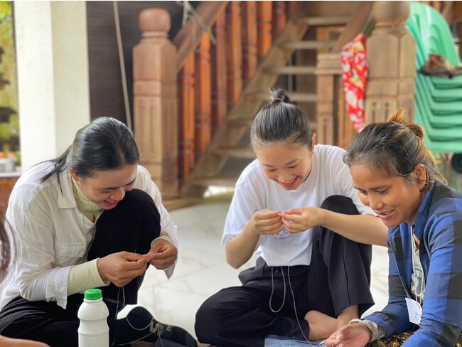 「カワイイで世界を変えたい」と国際協力に取り組む学生たち。今年8月に渡航し、現地の女性たちとアクセサリーを制作。売上の一部は支援金として還元します。