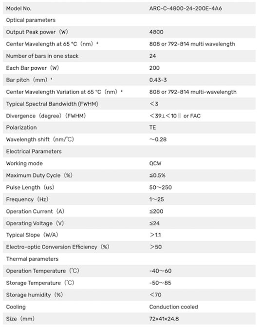792 nm -814 nm波長帯、最大4.8 kW対応の伝導冷却型スタックモジュール