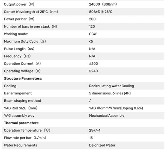 波長808 nm・最大出力24 kW対応QCWレーザーモジュール「JQ-24000-W-120-200-H564P-697」