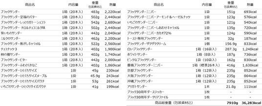 30種のブラックサンダーを詰め込んだ結果、商品総重量は約7.5kg、総カロリーは36,000カロリーを超えます。たくさんのブラックサンダーをどうぞお楽しみください。