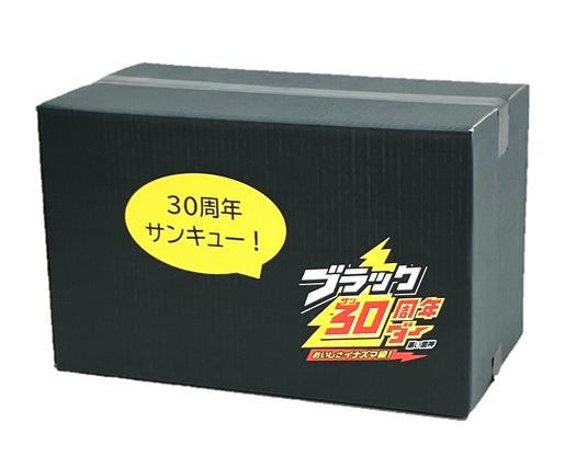 今回の「ブラックサンダー福箱」では、30種類のブラックサンダーを詰め合わせ、これまでの30年間の感謝の気持ちを込めて参考小売価格の約30%オフの特別価格で販売いたします。商品総重量約7.5kgのヘビー級福箱をどうぞお楽しみください。