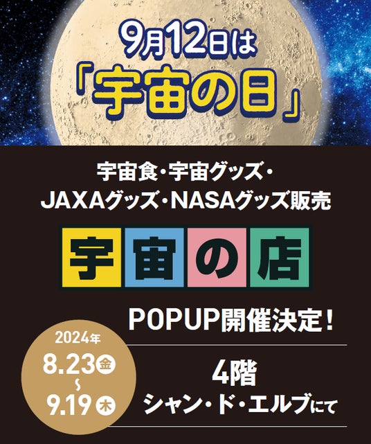 株式会社アトレ(本社:東京都渋谷区、代表取締役社長:高橋 弘行)が運営する直営ショップ「シャン・ド・エルブ」の催事店舗「シャン・ド・エルブ川崎店」(所在地:神奈川県川崎市)では、2024年8月23日(金)から 9月19日(木)まで 『宇宙の店』POP UPを開催します。