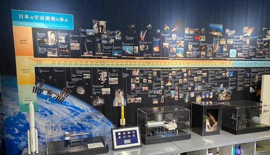 日本の宇宙開発ヒストリーをテーマに年表を展示し、年表に沿った模型も展示します。