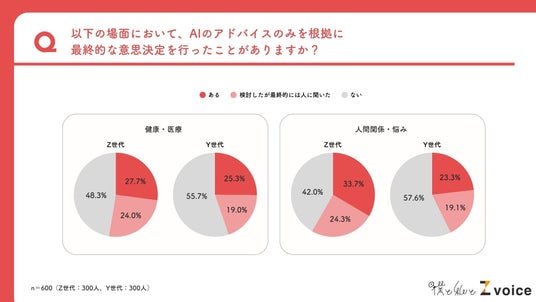 AIのアドバイスのみで意思決定するケースも。Z世代は「人間関係・悩み」「仕事・キャリア」が顕著