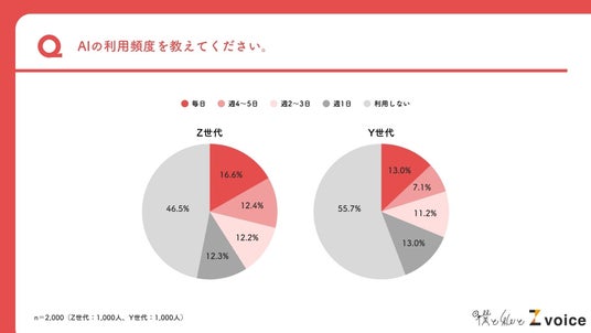 Z世代は週1回以上AIを利用。約3割が「毎日・週4~5日」と日常的に活用