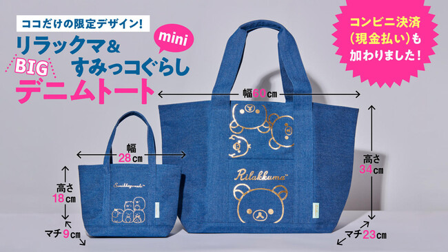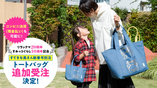 大人気キャラクター! リラックマ20周年(2023年)、すみっコぐらし10周年(2022年)を記念した大容量の「リラックマBIGトートバッグ」とキュートな「すみっコぐらしminiトートバッグ」。