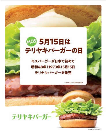 モスバーガーを展開する株式会社モスフードサービス(代表取締役社長:中村 栄輔、本社:東京都品川区)は、テリヤキバーガー生誕50周年を記念して、毎年5月15日を日本記念日協会認定の「テリヤキバーガーの日」と制定しました。