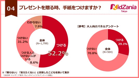 一方、大人向けアンケートでは「手紙をつけない」の回答が70.8%、「手紙をつける」の回答が29.1%でした。