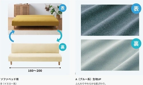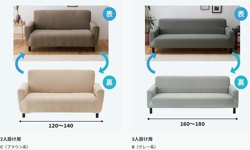 全方向に伸縮するのびのびソファカバーは、販売開始からご好評をいただいているのですが、ソファカバーを表裏色違いのリバーシブルにすれば、模様替えを2倍楽しめるのでは思い、企画しました。表裏が濃淡の使いやすい落ち着いた4色をご用意しましたので、インテリアや気分に合わせて、ご利用いただけると嬉しく思います。