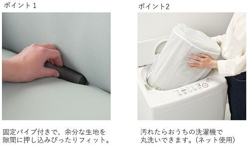 セシールで大好評ののびのびソファカバーに、両面使えるリバーシブルタイプが新登場!部屋のインテリアや気分に合わせて色を変えられるリバーシブル仕様で、気軽に模様替えができます。縦にも横にも伸びるので、装着も洗濯の際の取り外しも簡単。軽い力でしっかり伸びるので、装着に煩わしさを感じている方にオススメです。また程よい厚さの生地なので、丸洗いしやすく干しやすい!ソファカバーの丸洗いは重労働…、と感じていらっしゃる方にもオススメです。
