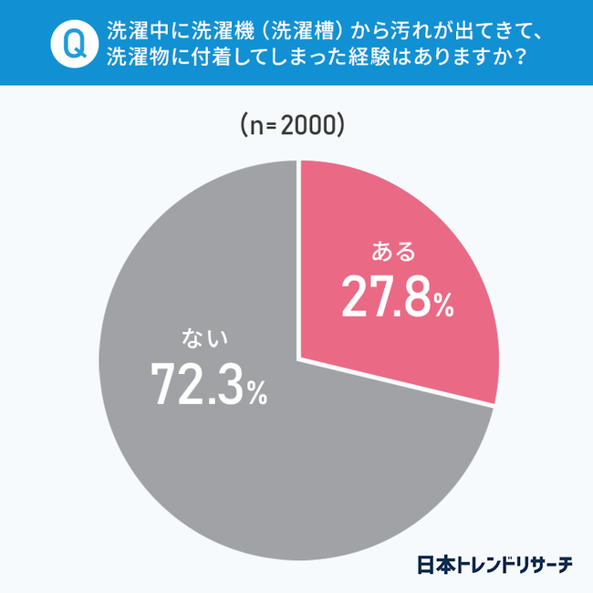 質問3:洗濯中に洗濯機(洗濯槽)から汚れが出てきて、洗濯物に付着してしまった経験はありますか?