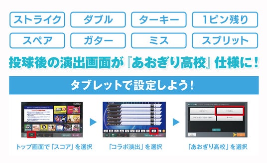 各レーンに設置のモニターに表示される投球後の演出画面が、期間限定で『あおぎり高校』仕様に!
