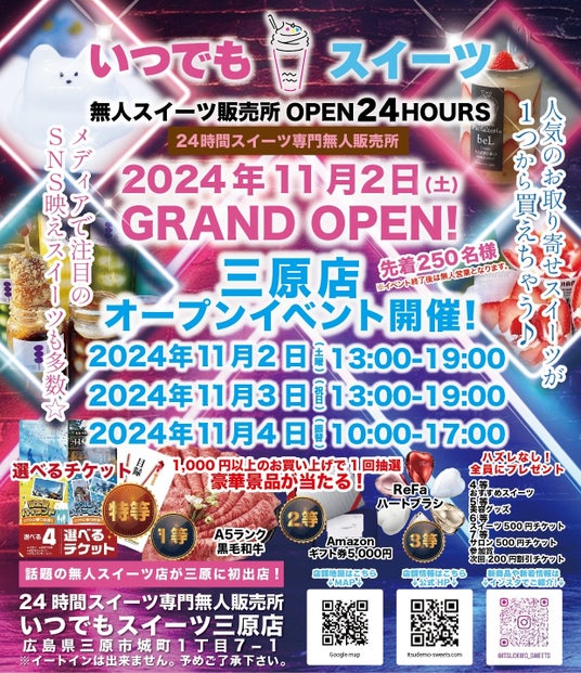 店舗名 :~無人スイーツ販売店~「いつでもスイーツ三原店/広島県三原市」