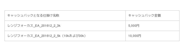 期間中に新規口座開設いただいた方にはレンジフォーカスのご利用で最大10,000円、既に口座をお持ちのお客様には最大30,000円をキャッシュバックいたします。