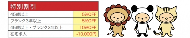そのような想いから、 「ブランク3年以上」 「45歳以上」「在宅求人」の場合は求人掲載の際に特別割引を行っています