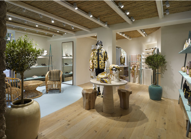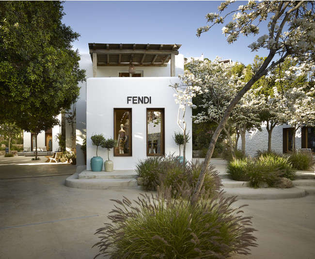 地中海の文化とミコノス島のおしゃれなセンスに、フェンディならではの特徴を融合した広さ約90平方メートルの店舗は、唯一無二の特別なコンセプトを元にデザインされています。