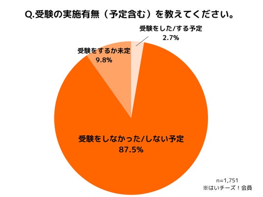 保護者1,751名に小学校受験の実施状況を聞いたところ、2.7%が受験した(または予定している)と回答しました。