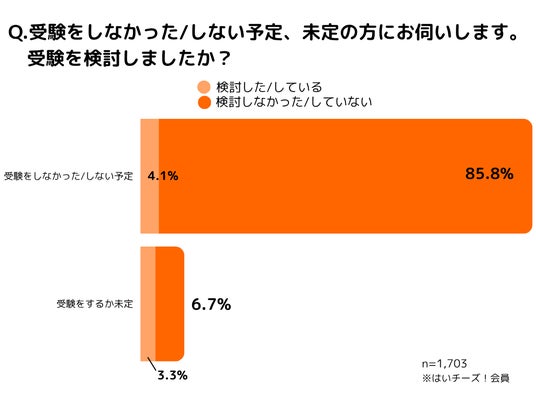 一方、非受験・受験未定の家庭のうち受験を検討したのはわずかで、多くの家庭が受験をそもそも検討対象にしていないことが明らかになりました。