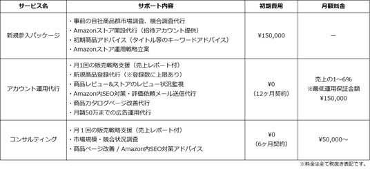 その他、広告運用代行、商品ページ作成代行、商品カタログ画像作成代行、越境Amazon支援サービスも提供します。詳細は、サービスサイトをご覧ください。