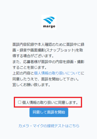 Web面接ツールSOKUMENには、応募者の面接時、及びWebエントリーシート提出時に各社の個人情報保護方針(個人情報の取り扱い)に同意させたうえで実施させる機能がございます。