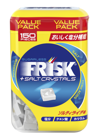 「フリスク ソルトクリスタル ソルティライチ」は、「塩分」「クエン酸」「カリウム」を配合し、発汗によって失われた塩分とミネラルを手軽に補給できる、機能性タブレットです。キリっとしたソルトとまろやかなライチの味わいがマッチした「ソルティライチ」フレーバーで気分のリフレッシュにおすすめです。汗かく季節に、手軽においしく塩分補給ができます。