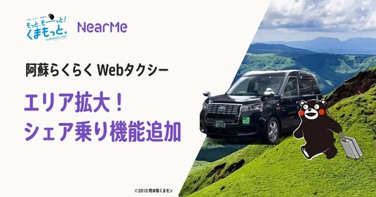 「阿蘇らくらくWebタクシー」は熊本市・合志市・菊陽町・益城町・嘉島町・大津町の6つの阿蘇周辺エリアへの対応を開始し、阿蘇だけでなく、他エリアと阿蘇を結ぶ新たな移動手段となった。さらに、ニアミー独自のAIを活用した“シェア乗り”機能の実装を開始。