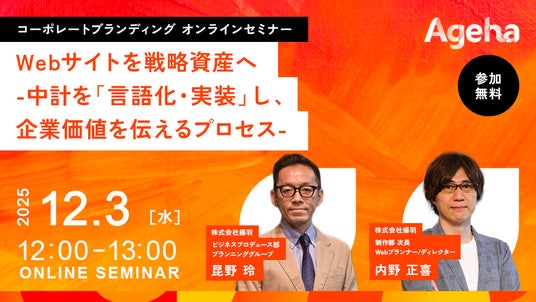 コーポレートブランディング支援を行う株式会社揚羽(東京都中央区 代表取締役社長:湊 剛宏 証券コード:9330)は、2025年12月3日(水)に「Webサイトを戦略資産へ -中計を「言語化・実装」し、企業価値を伝えるプロセス-」と題したセミナーを、オンラインで開催します。