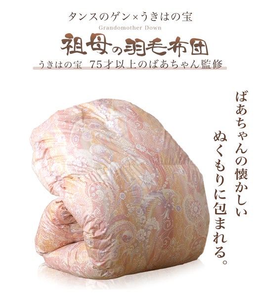 「祖母の羽毛布団」は、タンスのゲン楽天市場店、タンスのゲン本店の他、タンスのゲン運営のネットショップで販売しております。