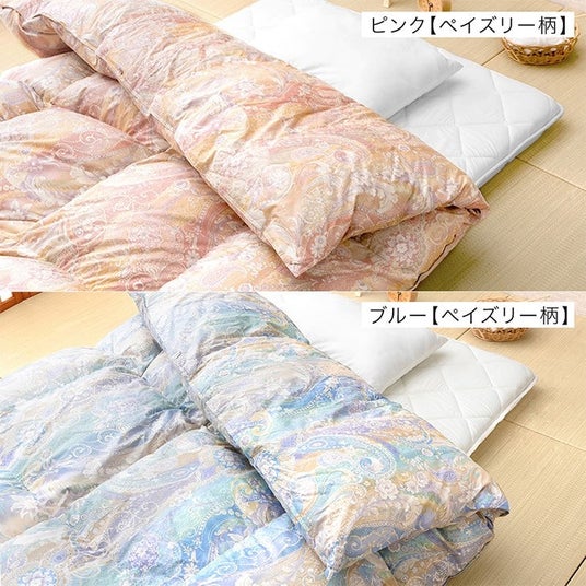 この羽毛布団はふかふかで軽く、非常に暖かくて寝心地が 抜群です。生地や柄も気に入ってます。
