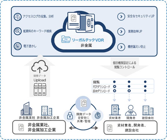 これらの機能により、「リーガルテックVDR 非鉄金属」は、データの安全な管理と共有、業務効率の向上を実現し、非鉄金属業界における取引、サプライチェーン管理、環境影響評価対応を包括的にサポートします。
