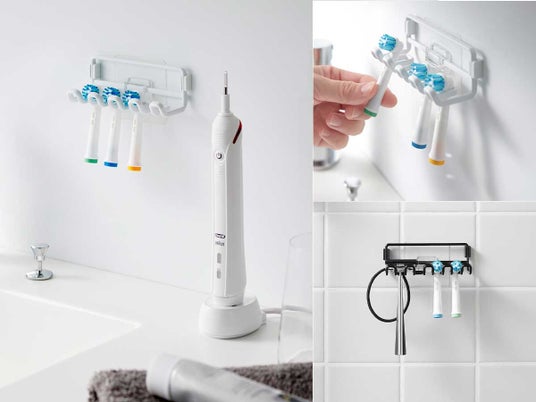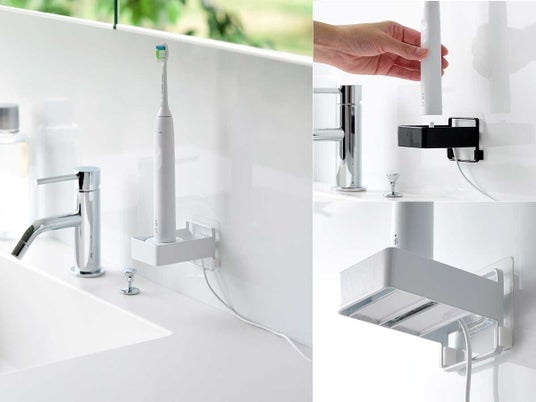 フィルムフックでお好みの位置に電動歯ブラシを設置できるラックです。