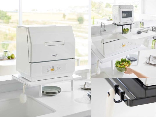 キッチンカウンターに食洗機の後ろ半分を載せて、省スペースに設置することができる2タイプの食洗機ラックです!