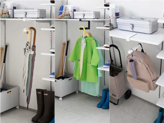 折り畳み傘やリュックなどの収納にもおすすめです。レインコートの一時掛けとしても便利です。