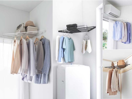 干したり掛けたり、棚としても使える!空間を有効活用できるコーナーハンガーラックです。