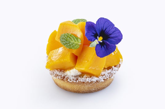 南国の果実マンゴーを主役にした一品は、ほどよい酸味ととろける果肉感が、夏の陽ざしを思わせる爽やかな味わいです。パッションクリームとココナッツクリームの上に、旬のマンゴーをたっぷりとデコレーションしました。