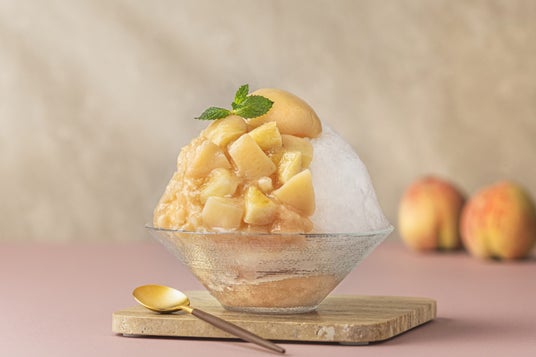 山梨県産の白桃を丸ごと1つ使ったプレミアムかき氷「ピーチ」