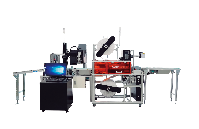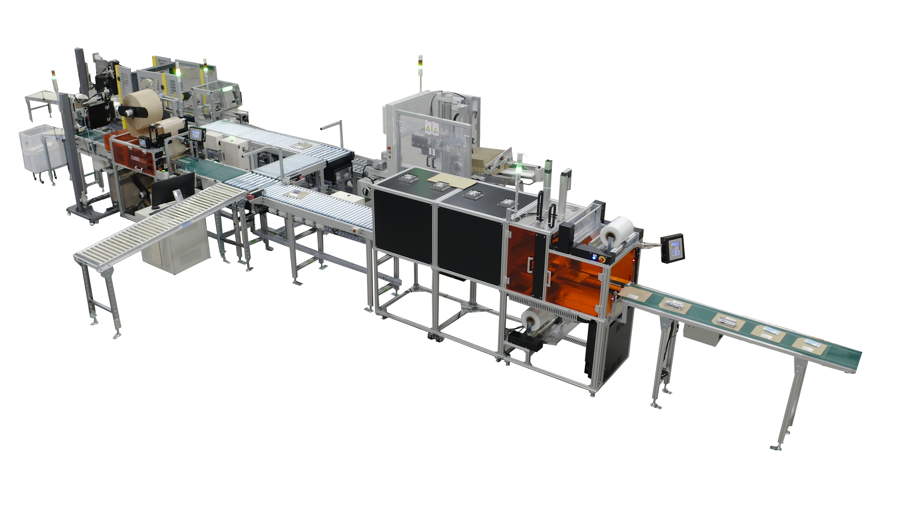 - 自動梱包機で商品別梱包素材選定・梱包・ラベル貼付
