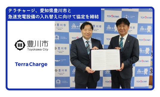 EV充電インフラ事業「Terra Charge(以下「テラチャージ」)」を展開するTerra Charge株式会社(本社:東京都港区、代表取締役社長:徳重徹、以下「当社」)は、愛知県の豊川市(読み:とよかわし)と、「電気自動車充電設備の整備の推進に関する連携協定」(以下「本協定」)を締結したことをお知らせします。